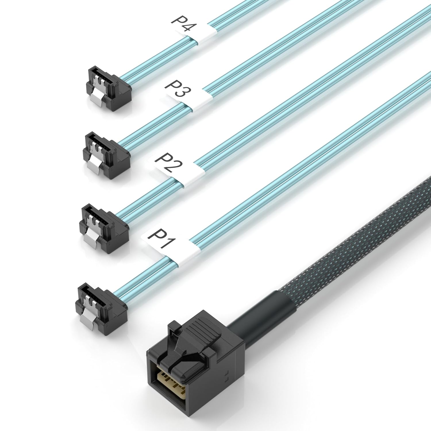 10Gtek MiniSAS HD SFF-8643 Breakout to 4xSATA Cable, for Server JBOD/Storage Tray & SAS RAID Controller Compatibility, 0.5m(1.6ft), 4-Pack