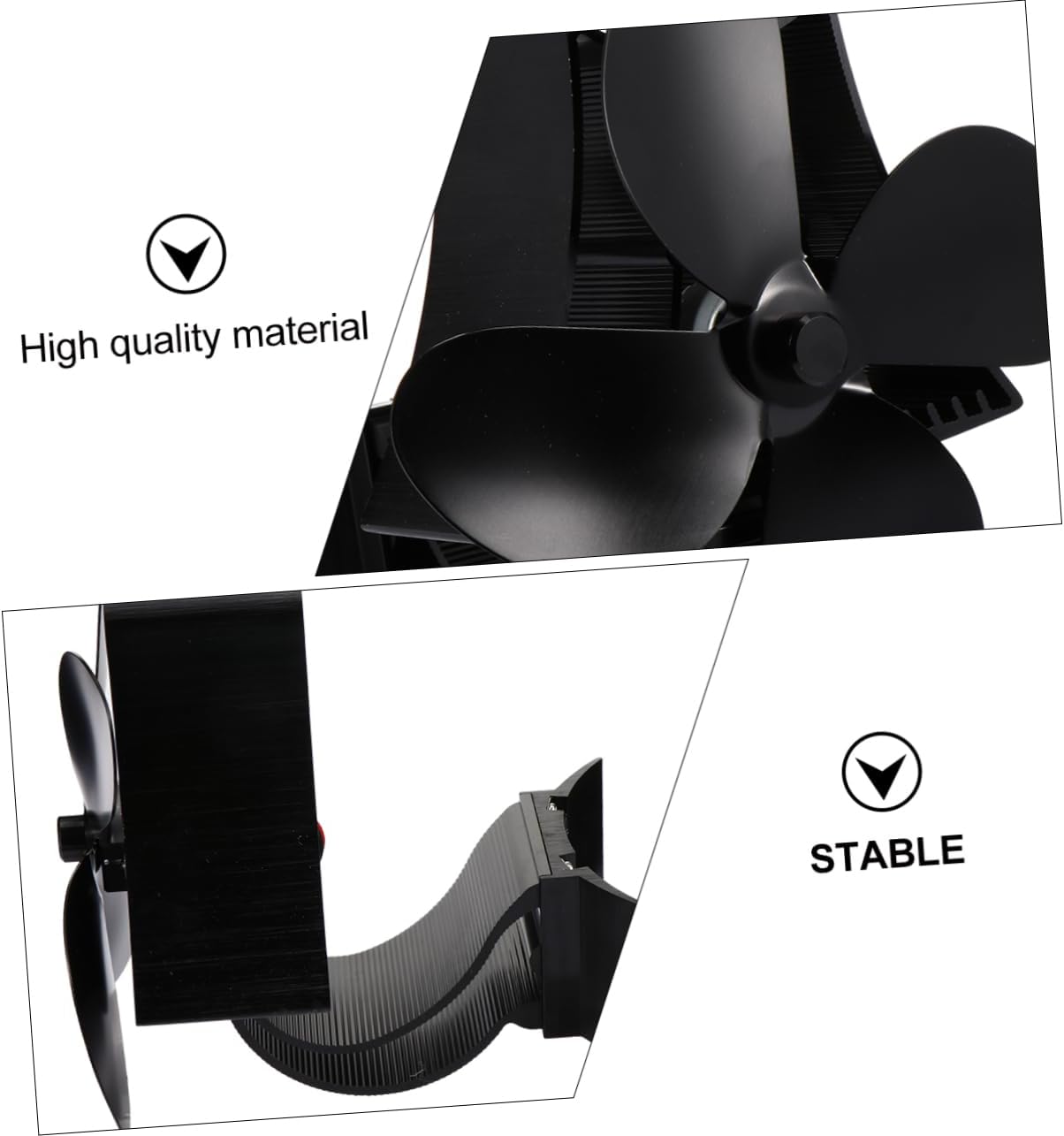 Package List 1 x fireplace fan Features - Blades: 4pcs Fireplace Stove Fan. - Air Volume Unit: 180-210 FM. - Rotate velocity: 1100 r/min. - Size: 17 x 17 x 15 cm/6.68 x 6.68 x 5.89 inch. - Noise: ≦ 25 . - Material: Oxidized aluminum alloy. - Operating Temperature Range: 60°C - 350 °C. - Extremely quiet while working. Say -bye to the loud noise of electric-forced fans! You won't even know the fan is there, but you'll feel warm all the time Thermal Power Fan. - Generate power by converting the heat from your fireplace or stove. No electricity needed Fireplace Fan. - Not so much air volume as electric fan, but enough to blow the hot air to the whole room Stove Fan. - Made of material, heat- and to use. It can reach the temperature of the 60-350℃。 - The fireplace fan is made of oxidized aluminum alloy and will not or corrode.Goods DescriptionStove Fan This stove fan is powered by transforming heat into energy, without using any battery or electricity.Fireplace Stove Fan So it is and low energy consumption.Thermal Power Fan The hotter the surface of the furnace, the more air circulating in the fan.Fireplace Fan When the fan is getting hot, can circulate heat throughout the room