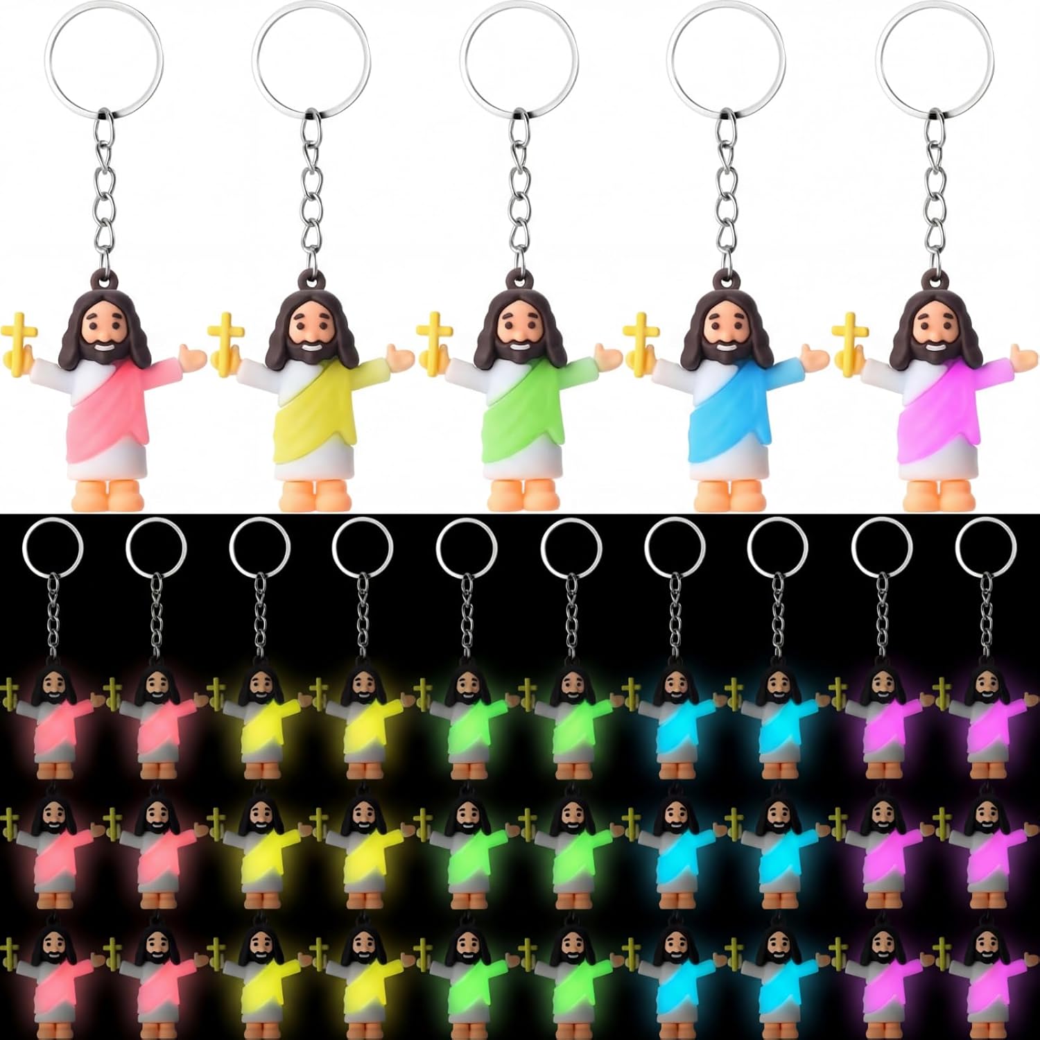 • Quality Materials and Glow-in-the-dark Design: these adorable Easter Jesus figurine keychains feature a unique glow-in-the-dark design that brightens after being exposed to light or sunlight for a while, making them eye-catching in the dark; They are made of and reliable rubber material with a solid and smooth surface that will not fade, deform or break, and will serve you for a long time
