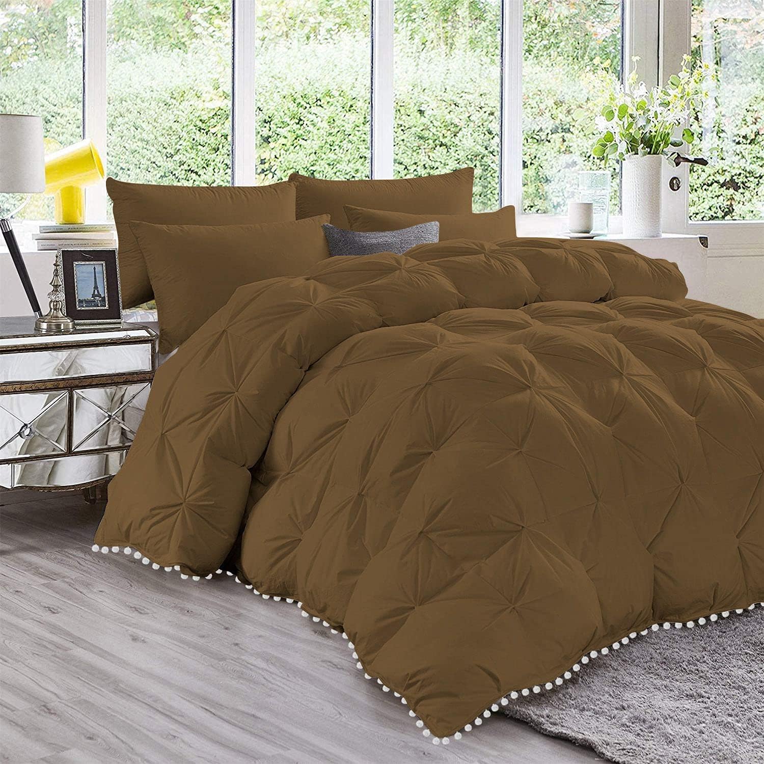 Twin/Twin XL Pom Pom Pinch Pleated Comforter (68"x90") inches and 2 Pillow Sham (20"x30").