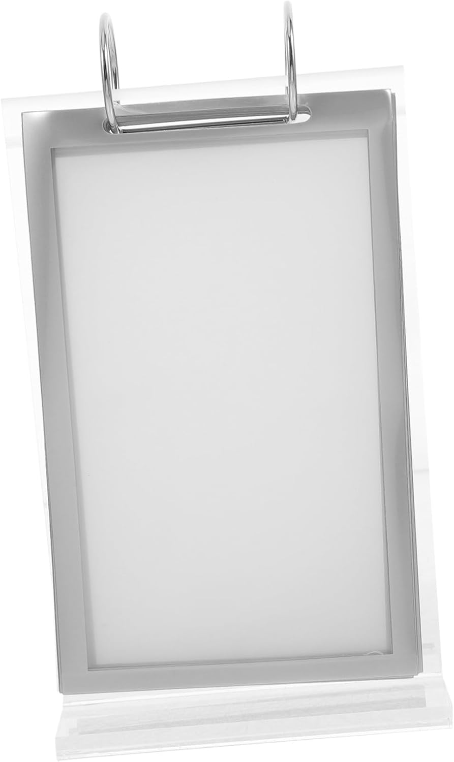 Package List 5 x Menu Holder Characteristics -Material:Acrylic flip display menu stand - Size(inner page): 14.80X10.00X0.01cm/5.82X3.93X0.00in display stand - Color: Transparent picture holders for tables - Size(whole): 19.00X11.50X5.80cm/7.47X4.52X2.28in menu stand -Enhances the visual appeal of your products or services by adding a touch of elegance and sophistication table top holder. -Creates a stylish and professional atmosphere, making your establishment more inviting and attractive to customers menu display stand. -Easy to set up and use, allowing for quick and convenient installation and maintenance paper holder. -Menu holder is lightweight, easy to place or remove, suitable for home, office, restaurant and more occasions. desktop menu storage rack -Helps to attract and retain customers by providing a visually appealing and organized display of your offerings poster holder.Goods Informationmenu display stands Its sleek and minimalist design adds a touch of sophistication to any setting, making it for use in cafes, home decor stores, training centers, and shoe shops.table menu rack This table card display stand is a must-have for any business looking to showcase their products or services in a stylish and professional manner