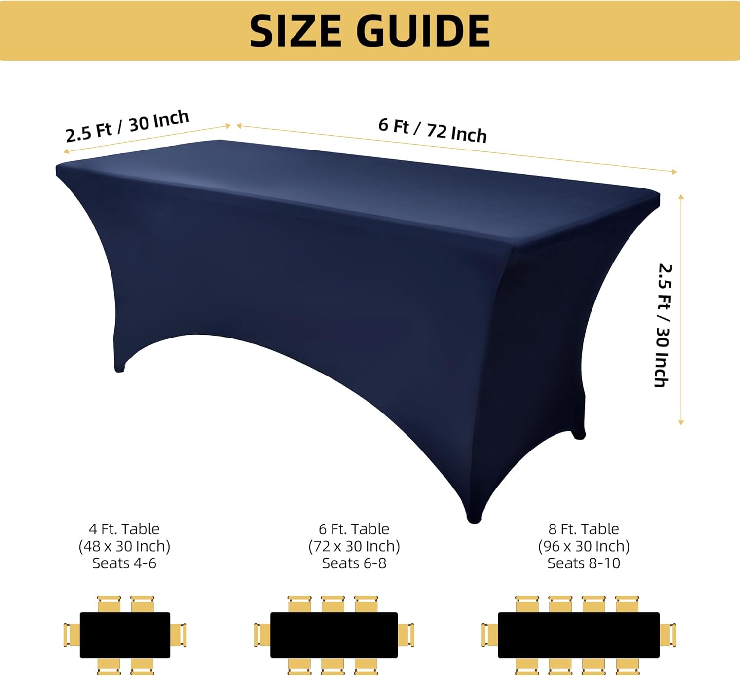 6-Pack 6ft Spandex Table Covers for Rectangle Standard Folding Tables - Wrinkle Resistant Stretch Tablecloths - Ultimate Fitted Table Protector for Parties, Trade Shows, Wedding