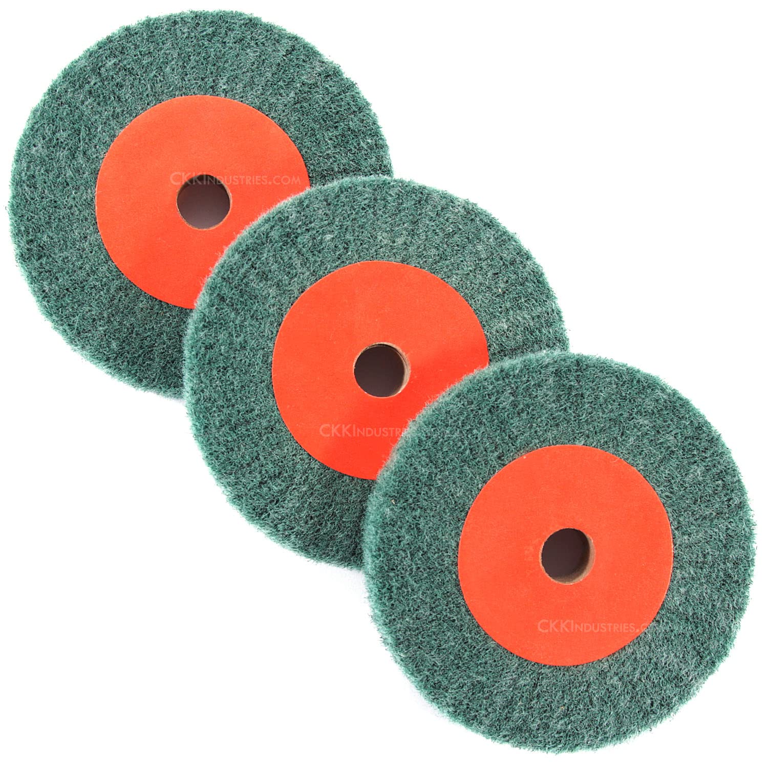 These are non-woven abrasive flap wheels. They are especially capable for polishing the edges of KYDEX, HOLSTEX, Boltaron and Concealex thermoform holsters and sheathes. If you are trying to achieve that fine edge polish on your diy holsters, these are the tools used by professional holster makers to attain this result. The flexibility of the abrasive fibers provides a clean and consistent edge finish every time. We sell three different grits.This abrasive model is the 400 grit. It is used for intermediate material removal.Specifications Size - 6.0 x 0.50 Inches Shaft Hole Size - 0.50 Inch Grit - 400 Quantity - 3 Pack