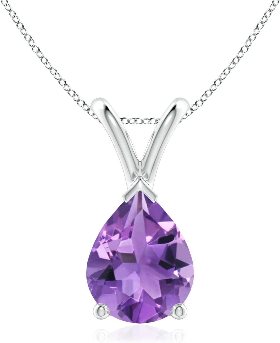 Angara V-Bale Pear-Shaped Amethyst Solitaire Necklace in Sterling Silver/14K Solid Gold/Platinum | Natural Amethyst Solitaire Pendant for Women | February Birthday Gemstone Jewelry Gift