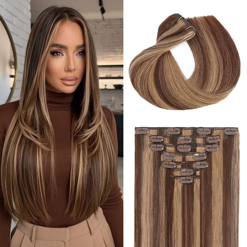 | Material Features | Clip in 100% Brazilian Remy Human Hair, Clip in Hair Extensions Natural Highlight, Human Hair, Human Hair Clip in Extensions, Natural |