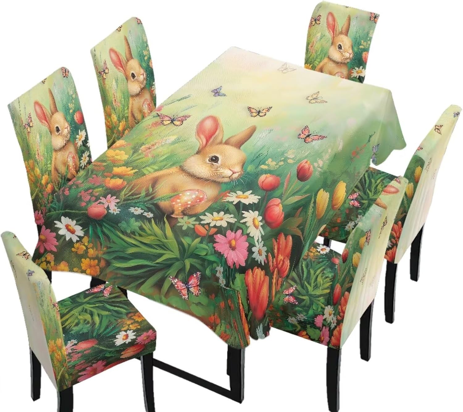 Size Chart Tablecloth dimensions: Length: 82.68 in = 210 cm, Width: 55.12 in = 140 cm Chair cover dimensions: Backrest length: 17.72-25.59 in = 45-65 cm, Backrest width: 15.75-19.69 in = 40-50 cm; Seat cushion length: 15.75-19.69 in = 40-50 cm, Seat cushion width: 15.75-19.69 in = 40-50 cm Please allow 1-2 cm differ due to manual measurement. Please check and compare the size carefully before buying Wide Usage: Removable protective chair cover and table cloth can be used for dining room, hotel, restaurant, wedding, banquet, meeting, celebration, dinner, ceremony, picnic, camping picnic, birthday, graduation etc Easy to Install: Effortlessly install and remove in just a few simple steps. Our chair covers are machine washable for hassle-free cleaning and maintenance, and are reusable Lightweight and Easy to Store: When not in use, it folds down to a compact size for easy storage in cabinets or storage boxes, taking up minimal space in your home. This makes it convenient for seasonal storage or temporary organization Easy to Care: Our comfortable dining chair covers and stain-resistant tablecloths are machine washable in cold water and can be tumble dried. Iron on low heat or no ironing required. Do not bleach