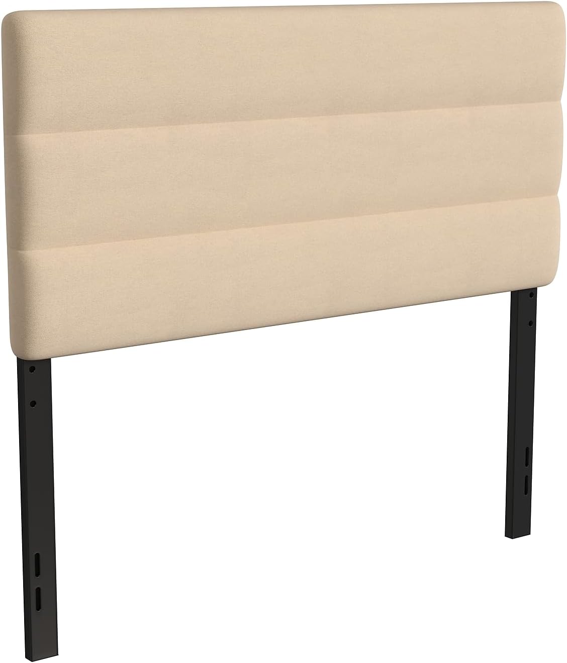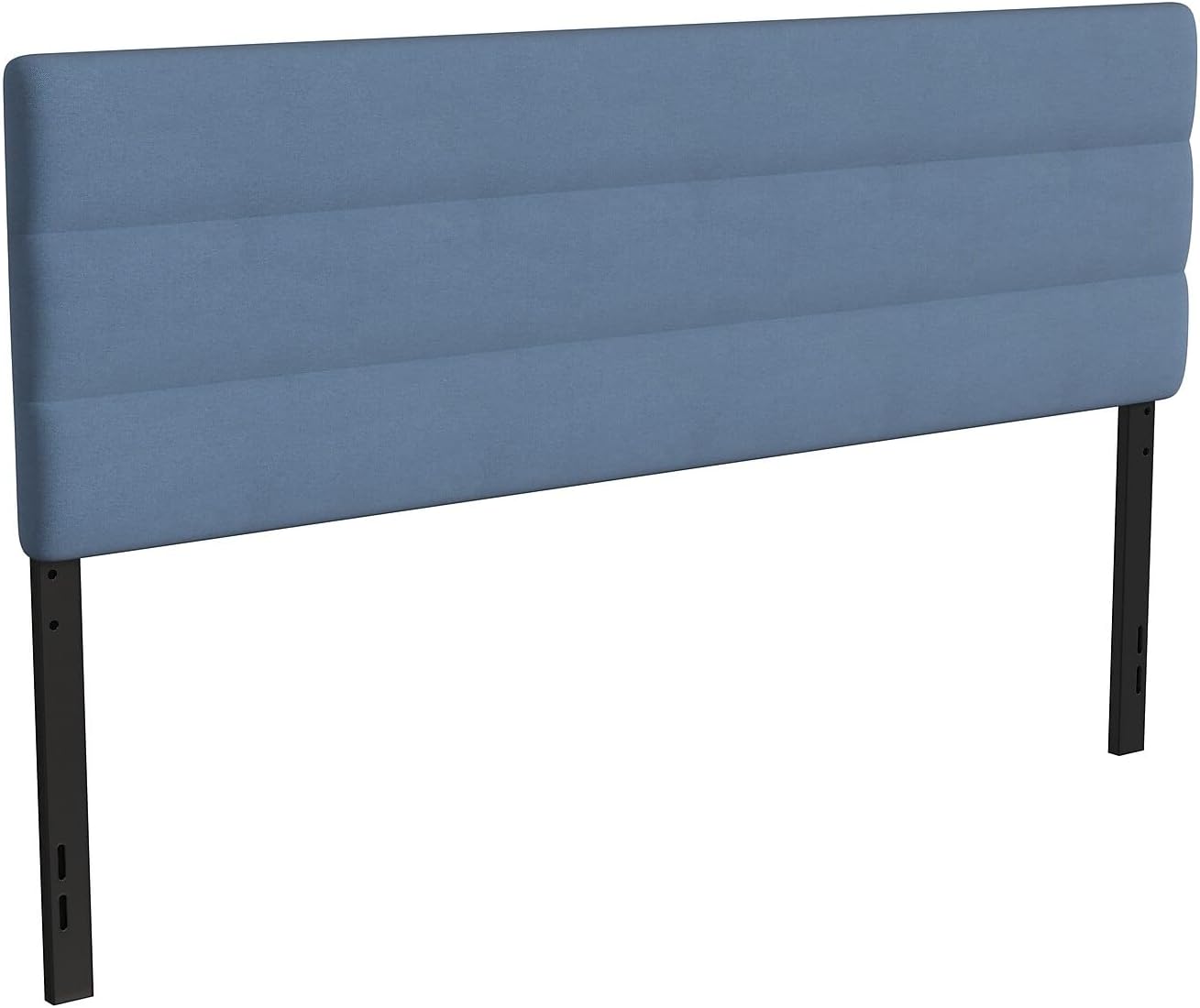 Clean lines and a tailored design are hallmarks of this padded, tufted metal headboard that has something for everyone. Available in multiple colors and boasting horizontal channel stitching, this modern headboard will give you a comfy, cozy feel at a price that is easy on your budget. The rectangular shape, upholstered in soft but durable faux linen, will make a statement in any room. Durably constructed with solid iron framework, this headboard is long-lasting for years of use. Pre-drilled holes in the legs let you adjust the headboard to your desired height from 44.5"H - 57.25"H while the universal design fits most platform as well as standard bed frames. Plastic floor glides prevent damage to your hard flooring surfaces when the headboard is moved. Assembly is easy and takes less than 30 minutes with the included hardware and illustrated instructions. Wipe your new headboard clean with a damp cloth to maintain the appearance.