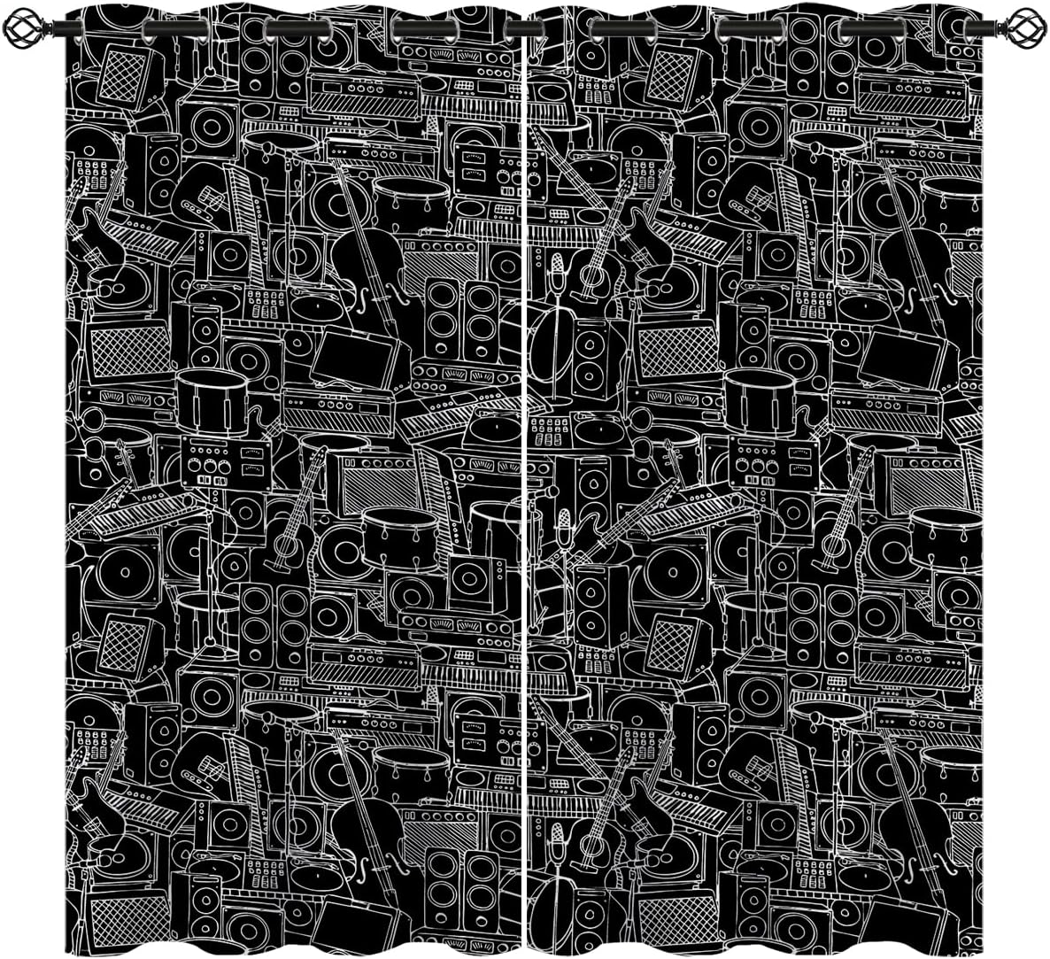 These print curtains are perfect for Living room, bedroom, kids room, kitchen, yard, patio, parlor, sliding door with Guitar,Electronic Musical Instruments Rock Music Art pattern.- Unique design:· Save energy costs by insulating against heat and cold.· Reduce noises from busy streets and high-traffic areas.· Protect furniture from sun damage and fading.· Provides complete privacy when needed· Perfect for any bedroom, office kids room and living room.- Package Included:· Blackout window curtains 2 Pcs set ( two panels).- Material:· Our Blackout Curtain Liners are crafted from a durable soft and thick triple weaved blackout fabric which can block out sunlight and UV rays. The darker color of the fabric, the more light it can block.- Easy Care Instructions:· Machine washable in cold water· Do not bleach.· tumble dry on low· low temperature ironing- Notes:· For your curtains to be more perfect, please choose a size 5-10 Inch larger than the actual window width.· here may be slight differences in colors on different displays. If you have any questions about the product, please feel free to contact us.