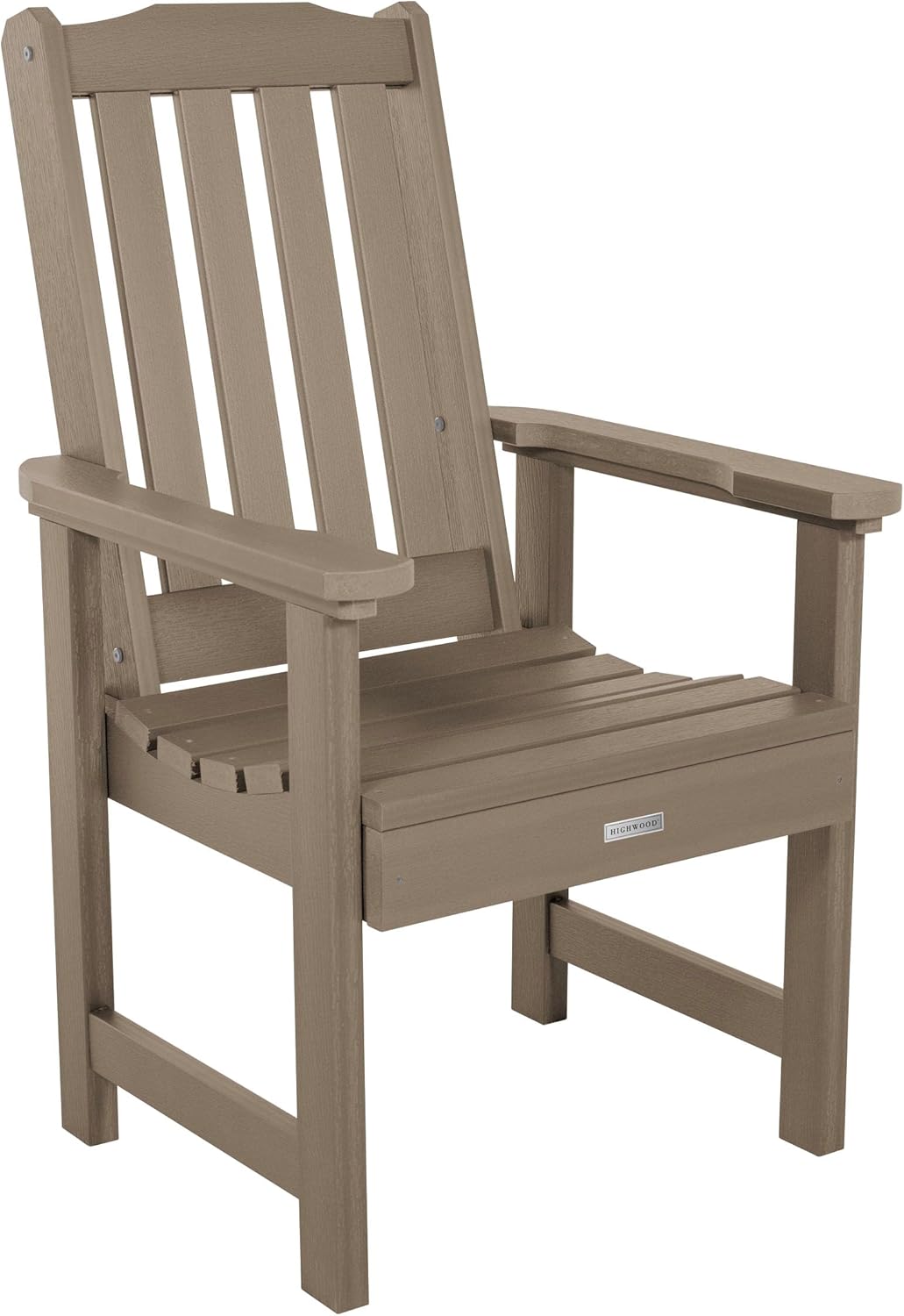 Welcome to highwood®. Welcome to relaxation. We are proud to offer the wood-replacement material of choice, as used in America’s largest theme parks, coastal resorts and hot-tub cabinets; now available for your own backyard! This Lehigh Dining Armchair has elegant and traditional lines that make a statement without overwhelming the space. Pair this Dining Armchair with any highwood® Dining Table for a classic, refined seating and dining area. Dining separates can also be purchased to expand your set further. The proprietary Highwood high-grade poly lumber used in this product offers the most realistic look of natural wood WITHOUT the headaches of maintaining or replacing every few seasons. Simply wash your highwood® furniture to remove any dirt or grime. Explore the entire line of highwood® products to coordinate other beautiful, durable products that will make your outdoor living space the envy of the neighborhood. Still not sure? Request a free product swatch so you can view the color and composition in person. This product is assembled with 304-grade stainless steel hardware and comes with the assurance of a manufacturer’s 12-year residential limited warranty. The chair has been load-tested, per ASTM 1561-03 (2008) standard for outdoor plastic furniture and have a 500-pound weight capacity. Some assembly is required (see assembly guide) and assembled dimensions are 19"L x 38.3"H x 23.3"D (22lbs).