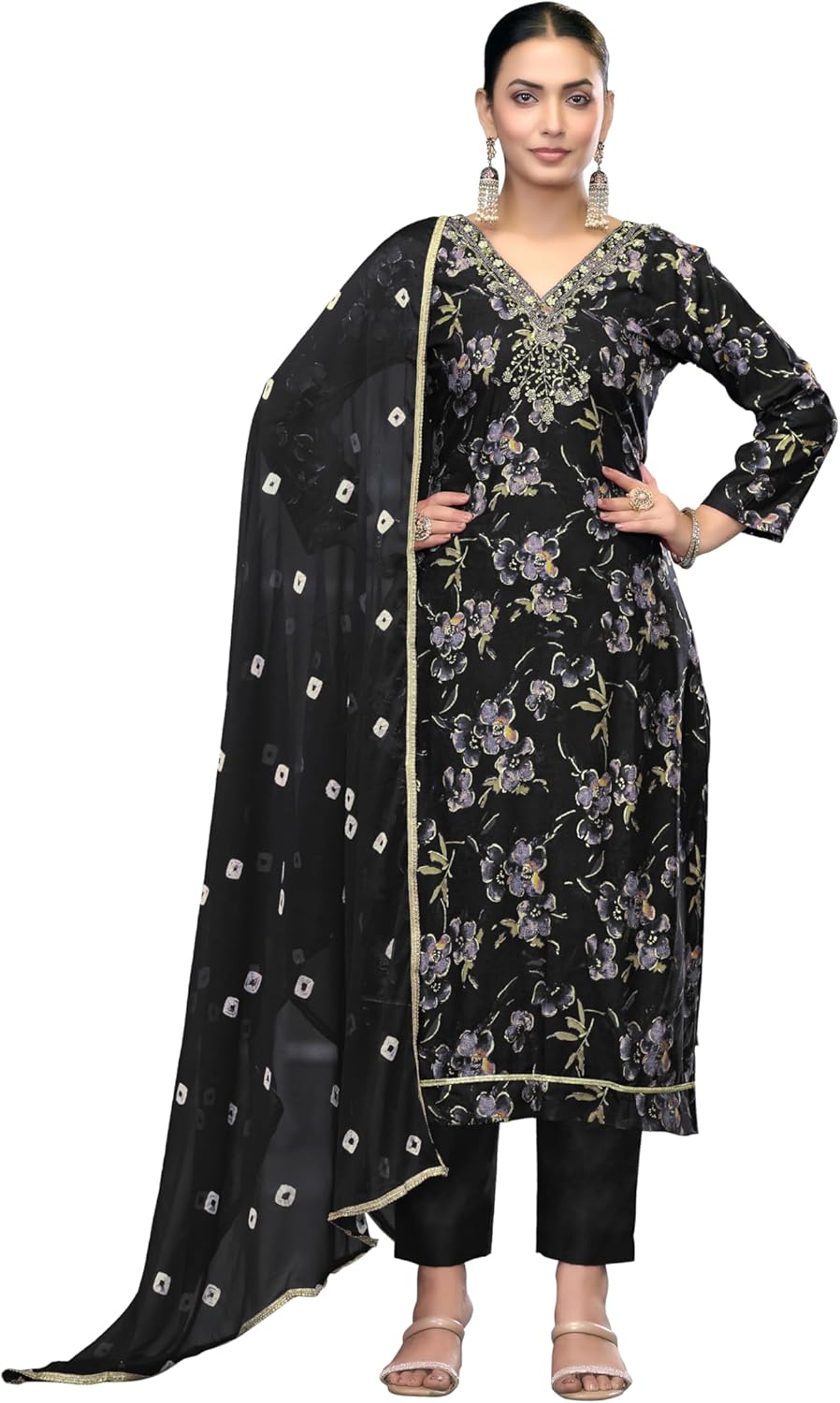 | Embellishment Feature | Designer Patterned Neck Top With Salwar And Dupatta |