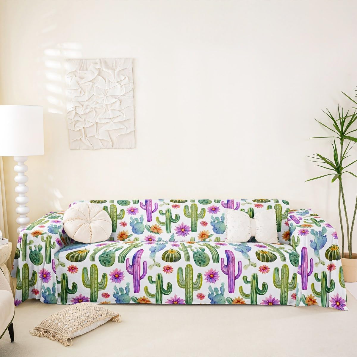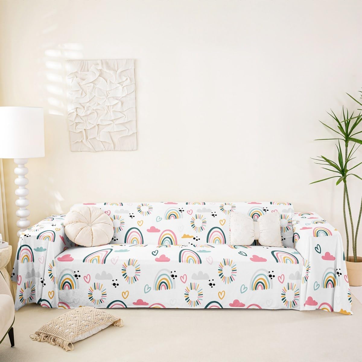 Crafted with short plush fabric, this sofa cover boasts a soft, skin-friendly texture and excellent breathability, ensuring unparalleled comfort even during extended sitting periods. Leveraging modern 3D digital printing technology, it features a rich variety of themed patterns that infuse your living room with vivid personality and an artistic ambiance. The material is soft and comfortable, and the back is anti-slip, enhances anti-slip performance and ensures a perfect fit on your sofa. As a practical and aesthetically pleasing home essential, it comes in a range of versatile colors that seamlessly complement any home decor style. Lightweight and easy to store without taking up extra space, making it a reassuring choice . Available in multiple sizes, it fits perfectly even on L-shaped sectionals. With its scratch-resistant and wear-resistant properties, it is also pet-friendly, maintaining a fresh and clean look for a long time. Notably, its uses extend far beyond sofa decoration and protection—it performs exceptionally well as a camping blanket, picnic mat, beach towel, or even a bed cover, truly realizing the high value of multi-purpose functionality