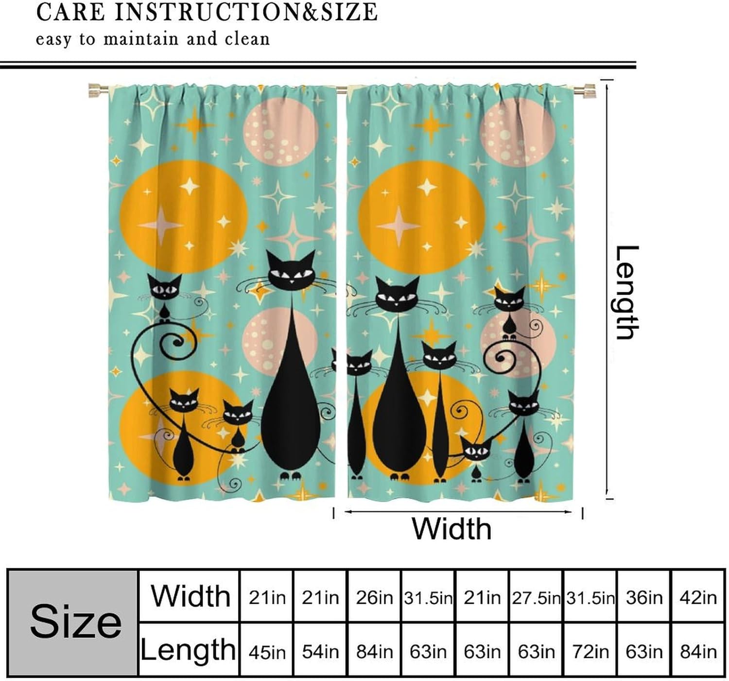 ☆High quality blackout window curtains. Made from high quality 100% polyester tight woven,These one of a kind decorative curtains will help transform your room into your private sanctuary! Perfect decoration item for your living room, dining room, bedroom, and dorm rooms.☆These one of a kind Curtains will help transform your room into your private! Perfect for any room including living rooms, bedrooms dining and dorm rooms. Matches well with vario color palettes of rugs, furniture and any other home decor accessory.☆Either a present to your family,mother, father, sister, brother, grandma, grandpa, wife, hband, son, daughter, friend, relative, boyfriend, girlfriend or to yourself and all other beloved ones. the item should be interesting, authentic.Everyone will like them.☆Allow 1-3cm errors because of manual measurements; slight color difference due to computer display or light, and make sure you don't mind before ordering☆☆Size DimensionOne panel measures 21" (W) x 45" (L). The overall size is 42"(W) x 45"(L).One panel piece measures 21" (W) x 54" (L). The overall size is 42"(W) x 54"(L).One panel piece measures 21" (W) x 63" (L). The overall size is 42"(W) x 63"(L).One panel piece measures 27.5" (W) x 63" (L). The overall size is 55" ( W ) x 63" ( L ).One panel piece measures 26" (W) x 84" (L). The overall size is 52" (W) x 84" (L).One panel piece measures 31.5" (W) x 63" (L). The overall size is 63" (W) x 63" (L).One panel piece measures 36" (W) x 63" (L). The overall size is 72" (W) x 63" (L).One panel piece measures 31.5" (W) x 72" (L). The overall size is 63" (w) x 72" (L).One panel piece measures 42" (W) x 84" (L). , The overall size is 84" (W) x 84" (L).
