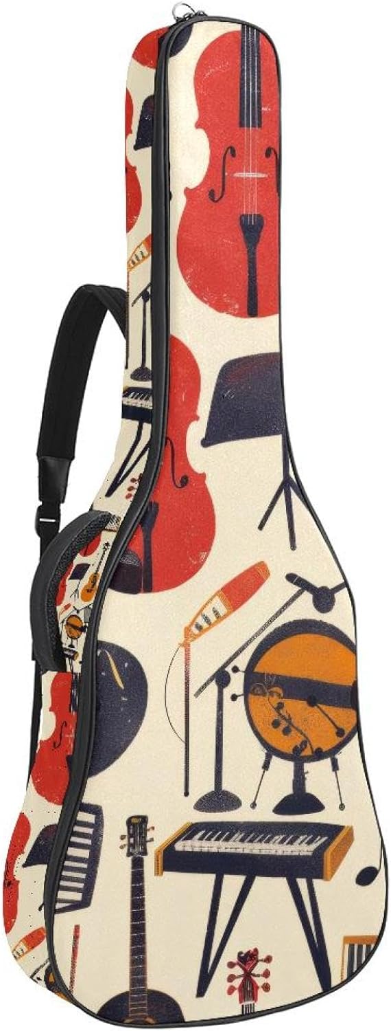 Give your valuable guitar the premium protection it deserves. Our Cute Printed Guitar Gig Bag is engineered for the modern musician who demands both security and convenience. Whether you're heading to a gig, a practice session, or on a short trip, this bag ensures your instrument arrives in perfect condition, ready to play.Constructed from durable, waterproof Oxford cloth, this bag stands up to the elements and the test of time. The interior is a sanctuary for your guitar, featuring ultra-thick padded sidewalls and a soft, anti-scratch lining that cradles your instrument, preventing scratches and damage. The heavy-duty rubber base acts as a shield against everyday bumps and allows for stable placement on any surface.Organization is effortless with multiple dedicated compartments. Two main storage pockets keep all your essential accessories—like a foldable music stand, tuner, picks, cables, and extra strings—neatly sorted and easily accessible. Never fumble for your tablet or sheet music again; the specially designed back pocket keeps them safe and separate.For a perfect, secure fit, the adjustable neck support and internal Velcro strap ensure your guitar does not shift around inside the bag, providing peace of mind with every carry.Care Instructions: To preserve the quality and appearance of your gig bag, please do not machine wash. Simply wipe clean with a damp cloth to remove any dirt or stains.