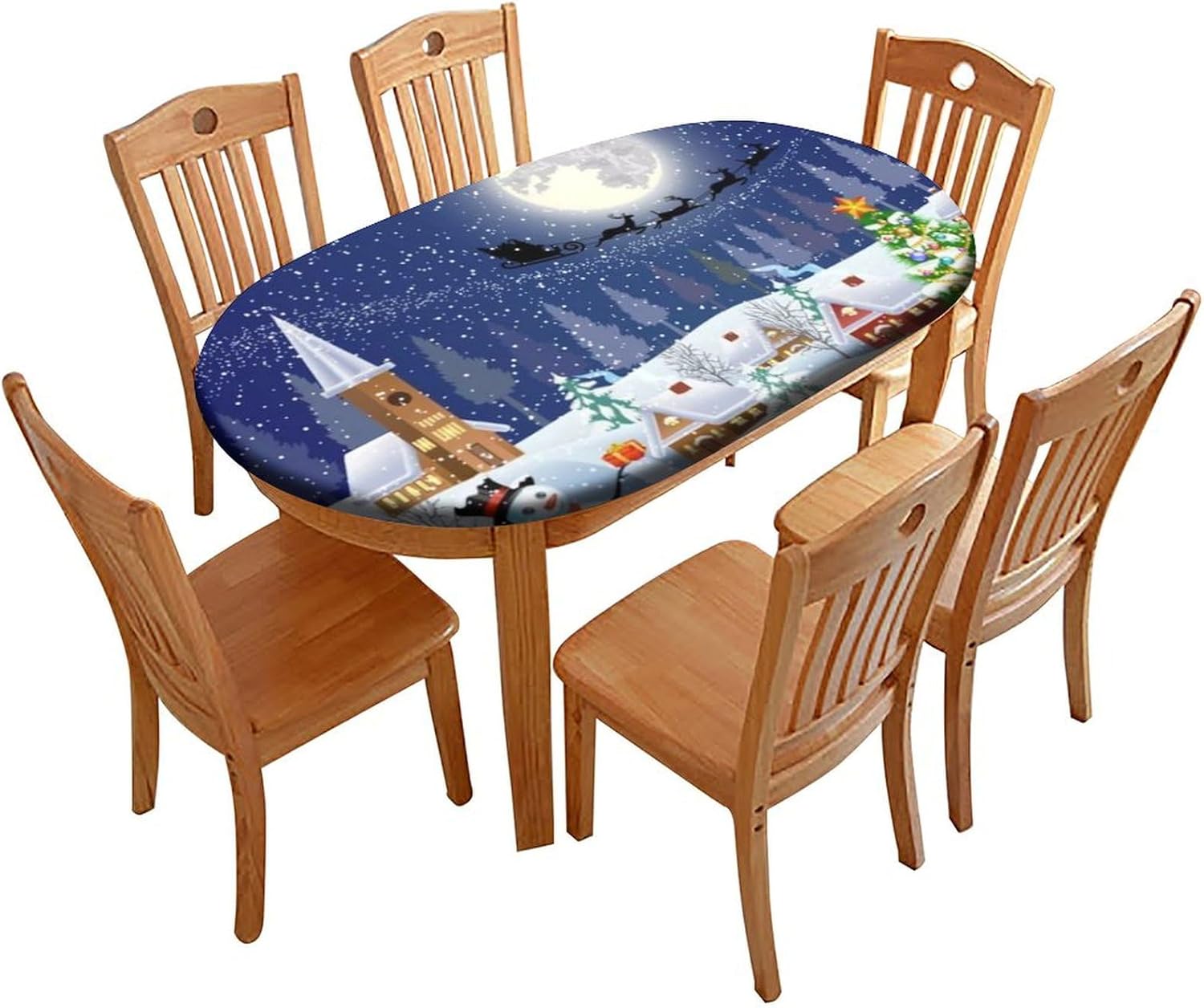 Features:Protect Your TableThe fitted oval tablecloth is made of 100% polyester. Polyester is waterproof, moisture Proof, oil-proof, splash-proof to keep your furniture use longer time. The polyester table cover with elastic edges can firmly fits your table. When you are eating, don't worry someone get up rub the table caused beverage spilling careless.Portable and ReusableThe polyester table cover is durable, lightweight and easy to carry. You can bring it for picnics, BBQ, party or other outdoor dinners. It is excellent for indoor, outdoor, courtyard, camping use.Easy to CareSometimes there are lots of food scraps and stains on the table surface after dinner. you only need a damp cloth or sponge to simple wipe, it will clean in a blink.Specification:Materials: 100% PolyesterSize: 48*24 inch, 60*36 inch, 68*48 inch, 80*48 inchPackage Includes: 1 Piece Oval TableclothHand-washing and machine washing are all available,but we suggest hand-washing and not dewatering, you can medium temperature ironing.If you like this fitted oval tablecloth, click the cart to place your order now! Trust me, you will love it!