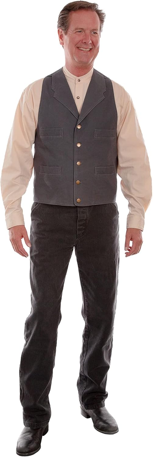Experience the perfect blend of style and comfort with our Scully Men's V-Neck Cotton Vest. Crafted from 100% cotton, this slim-fit vest features a classic V-neck design, button closure, and straight pockets, providing a timeless, western-inspired look. Available in a standard length and a solid blue and beige colorway, it's perfect for adults and western style enthusiasts. Machine wash cold for easy care. Size: Small (US).