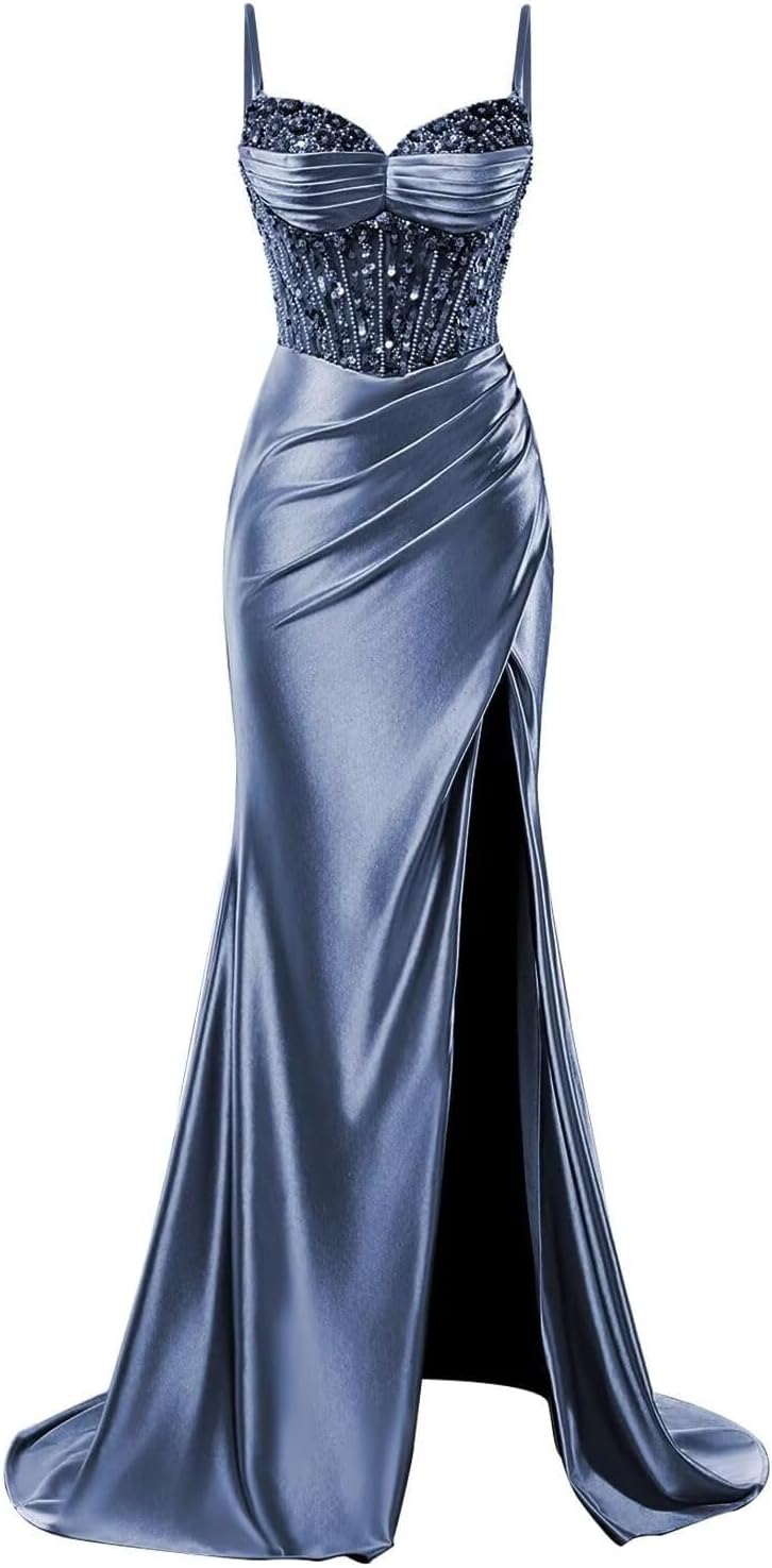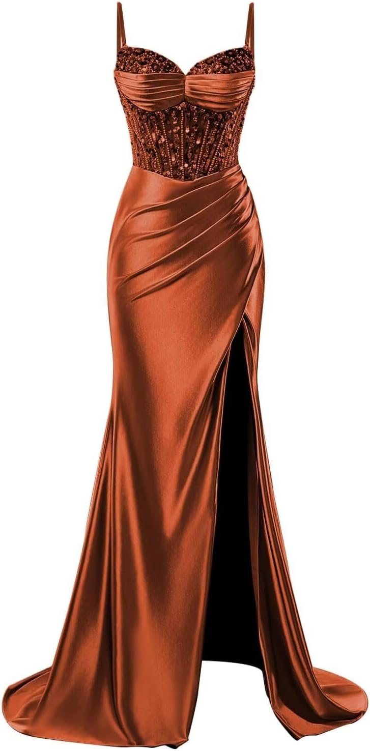 | Fabric Type | Spaghetti Straps Satin Prom Dresses with Slit are first choice in prom 2025 |