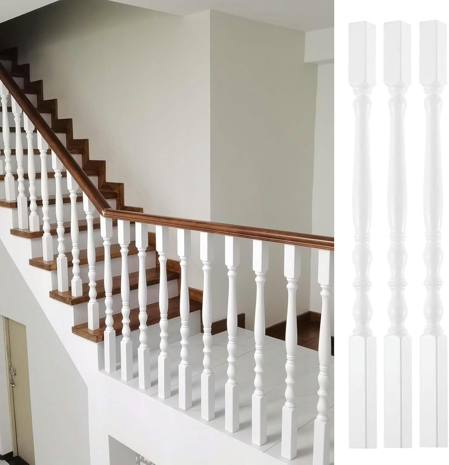 Our wood balusters are a great choice to update your deck or stair, even exposure outdoor environment. They can complement any environment seamlessly. Specification:- Material: Solid Wood- Color: White- Height: 95cm (37 3/8")- Width: 5x5cm (2x2")- Customizable: Yes Features:- Can be cut to desired size.- Perfect design is aesthetically pleg.- Provide extra security while decorating your home.- Sturdy solid wood material for strength and durability.- Made of wooden, smooth and burr-free surface for easy cleaning. Package Includes:- Stair Balusters- Mounting Screws Please Note:- Any horizontal handrails and end posts are not included.- Please allow a slight dimension difference due to different manual measurements.- Due to the light and screen setting difference, the item's color may be slightly different from the pictures. Quality Service:- If you have any issues with our products, please feel free to contact us.