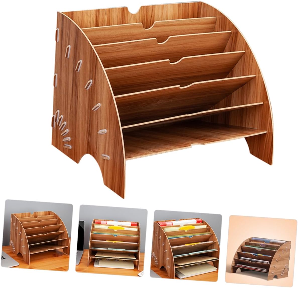 Package Include 1 x bookrack Characteristics - Color: Light brown Multiple-layer Book Rack - Material: Wood Multi-Layer Book Stand - Size: About 35.5 x 27 x 27cm/13.95 x 10.61 x 10.61inch Wooden Document Rack - Rational size, which can match the sizes of book and file Fan-shaped Book Rack. - Multiple-layer design, which can offers you better storage and organization effect File Book Storage Rack. - It is made of , which has the Paper File Organizer. - This shelf is suitable for office, study room, dorm and other occasions using Fan-shaped Bookshelf. - The fan-shaped design is very practical and , which allows you looking for the book or file quickly and easily Wooden Storage Shelf.Goods InformationMultiple-layer Book Rack The wooden desktop book rack is made of material and the bookshelf is stable and reliable.Fan-shaped Bookshelf Can be used for books, files, documents, newspaper and some other items' storage.Wooden Storage Shelf The fan-shaped design is very practical and