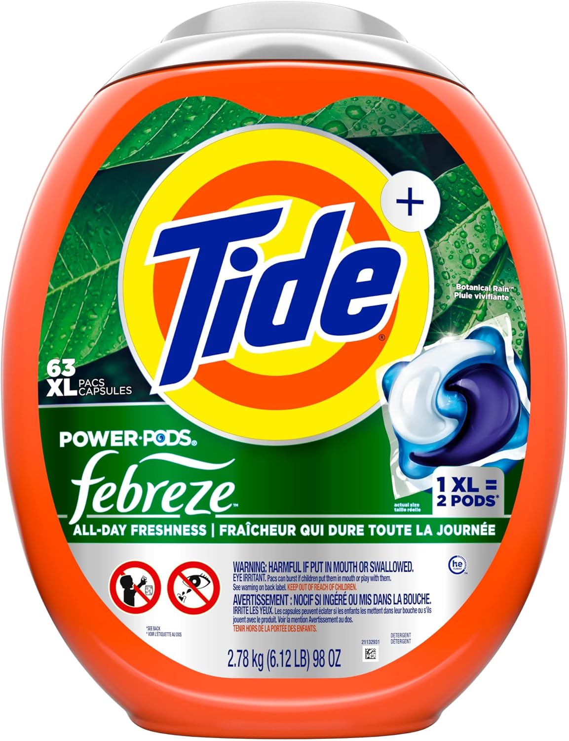 Botanical Rain, one of your favorite Tide scents is now available in Tide POWER PODS Febreze Odor Eliminators Plus Lasting Freshness laundry detergent pacs. Tide POWER PODS have 50% more cleaning power than Tide liquid detergent and are designed to fight stains and odors in every type of load and leaves clothes smelling fresh. Tide Plus Febreze delivers a combination of concentrated detergent, Febreze odors eliminators, stains removers, and long lasting freshness all-in-one solution. Tide POWER PODS help eliminate set-in stink at the source, while infusing garments with Botanical Rain scent. Tide POWER PODS works in all washing machines and water conditions-especially cold water More than a regular laundry soap, Tide POWER PODS Plus Febreze laundry detergent pacs give you the clean you expect from America's #1 most trusted laundry detergent brand*. * Voted most trusted laundry brand by American shoppers based on the 2022 BrandSpark American trust survey.