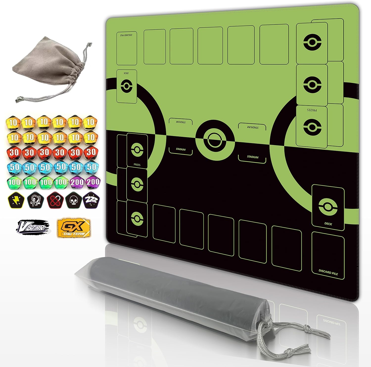 GuarditechProX Trading Card Game Playmat – 2-Player Trainer Mat with 37 Damage Counters and Professional Storage Bag