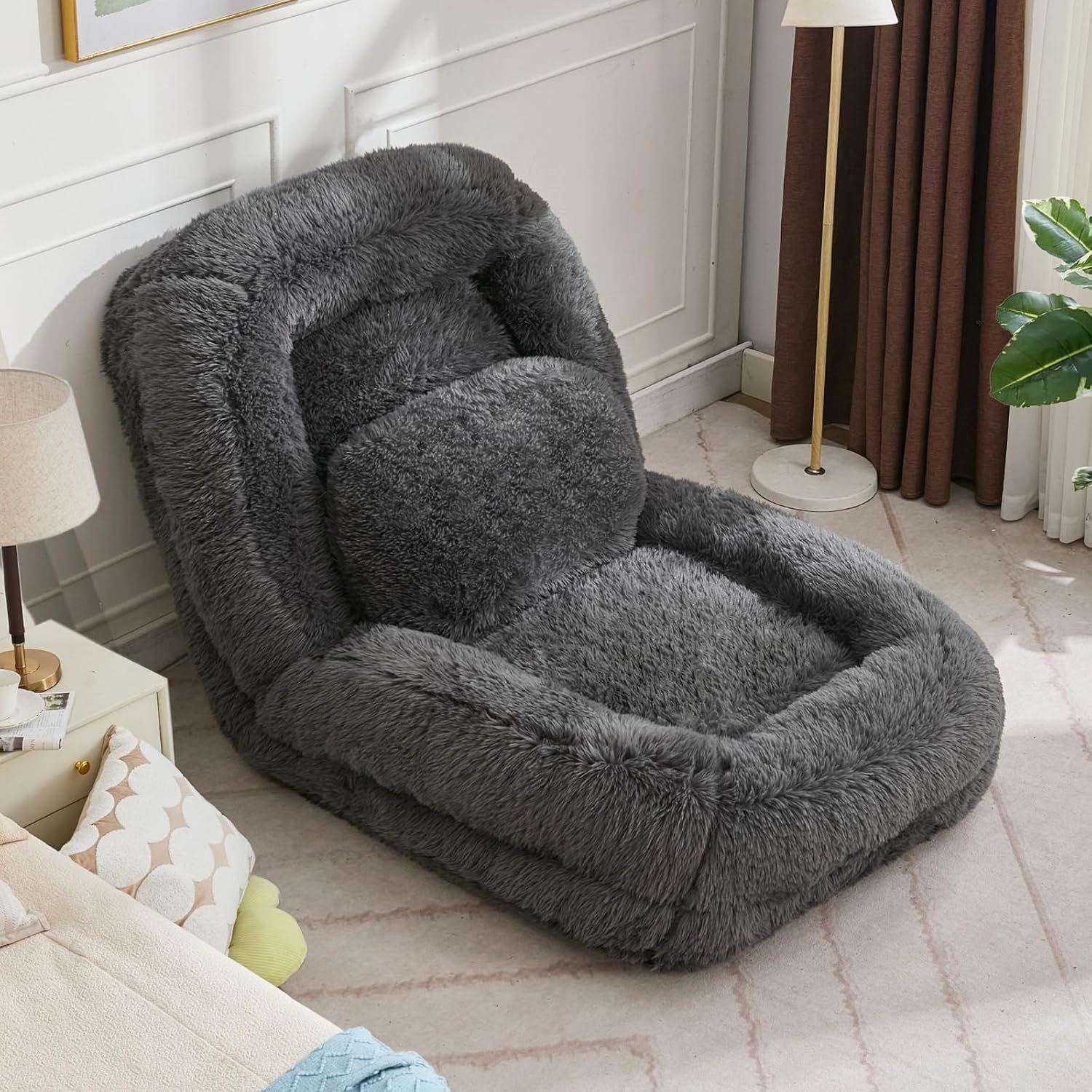This 5-position adjustable floor sofa bed combines versatility and comfort for modern living. With a backrest that locks from 90° to 180°, it easily switches from an upright gaming chair to a flat lounger, perfect for movie nights, meditation, or quick naps. Wrapped in ultra-soft fabric and padded with high-quality cotton-elastic sponge, it offers cloud-like coziness for adults, kids, and even pets. The sleek, modern design blends into any space—bedrooms, living rooms, dorms, or home offices—while the foldable structure transforms into a sofa bed or pet lounger as needed. Simple 3-step setup (open, insert frame, fluff) makes it ready to use in 72 hours, ideal for small spaces or anyone seeking flexible, comfy seating.