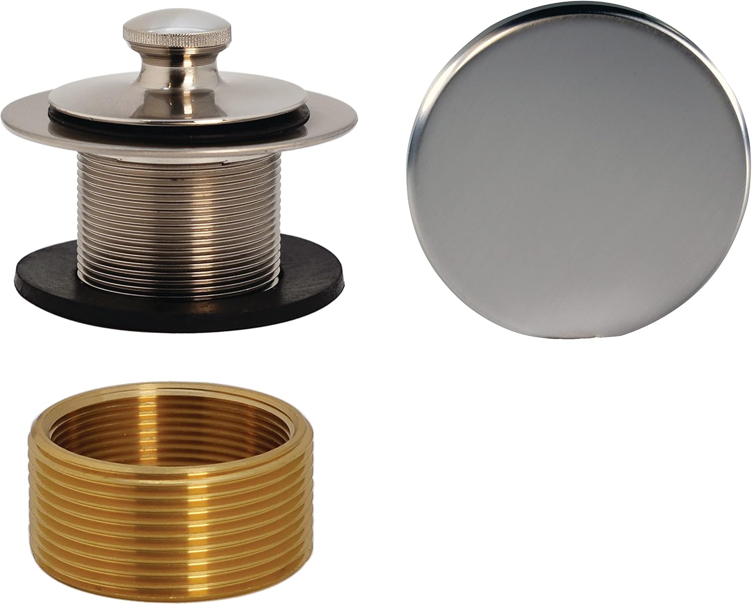 | Item Type Name | Universal Fine to Coarse Thread Twist & Close Bathtub Drain Trim with Illusionary No-Hole Faceplate and Adaptor Bushing |