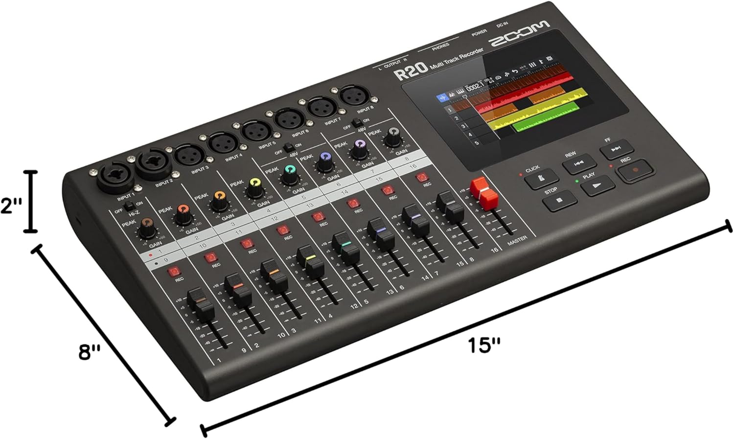 Zoom R20 Multi Track Tabletop Recorder, with Touchscreen, Onboard Editing, 16 Tracks, 6 XLR Inputs, 2 Combo Inputs, Effects, Synth, Drum Loops, and USB Audio Interface.